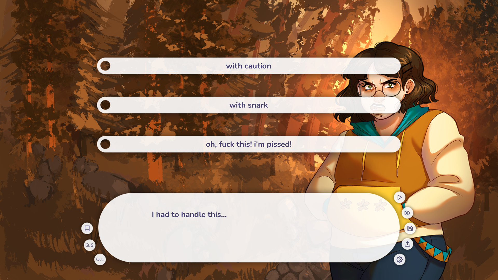 Drop in the Ocean: An Online Story is a visual novel in three Acts about Emily, a woman in her late 20s who struggles to find companionship. She finds friends and a community of people, but also encounters some of the worst of the internet in the process. The game aims to explore themes of community and cyber/feminism while also acknowledging the harms that women and other marginalized people face while existing in an online space.